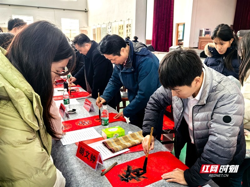 活动于14:00正式拉开帷幕,主持人姚振东介绍出席领导与嘉宾后,刘光明副主任致欢迎辞,常德市书法家协会主席李泽民送上祝福,随后活动正式启动。常德市青年文艺交流协会主席胡文钟、秘书长梁飞熊、副主席孙旭弘、副秘书长刘昕等协会骨干现场挥毫,为师生书写春联与“福”字,还指导学子书法技巧。湖南文理学院东校区管理办公室(筹)工作人员,常德市青年文艺交流协会副主席梁丝纶,副秘书长杨平平等协会骨干,全程参与组织协调,保障活动有序开展。